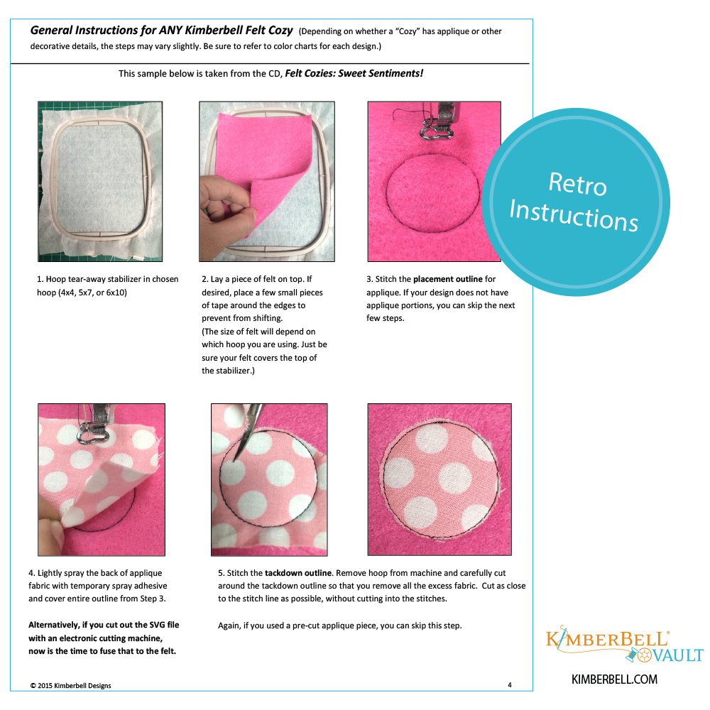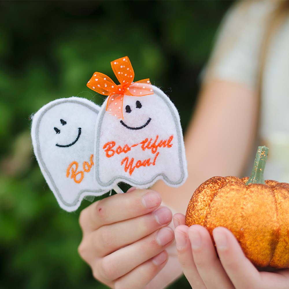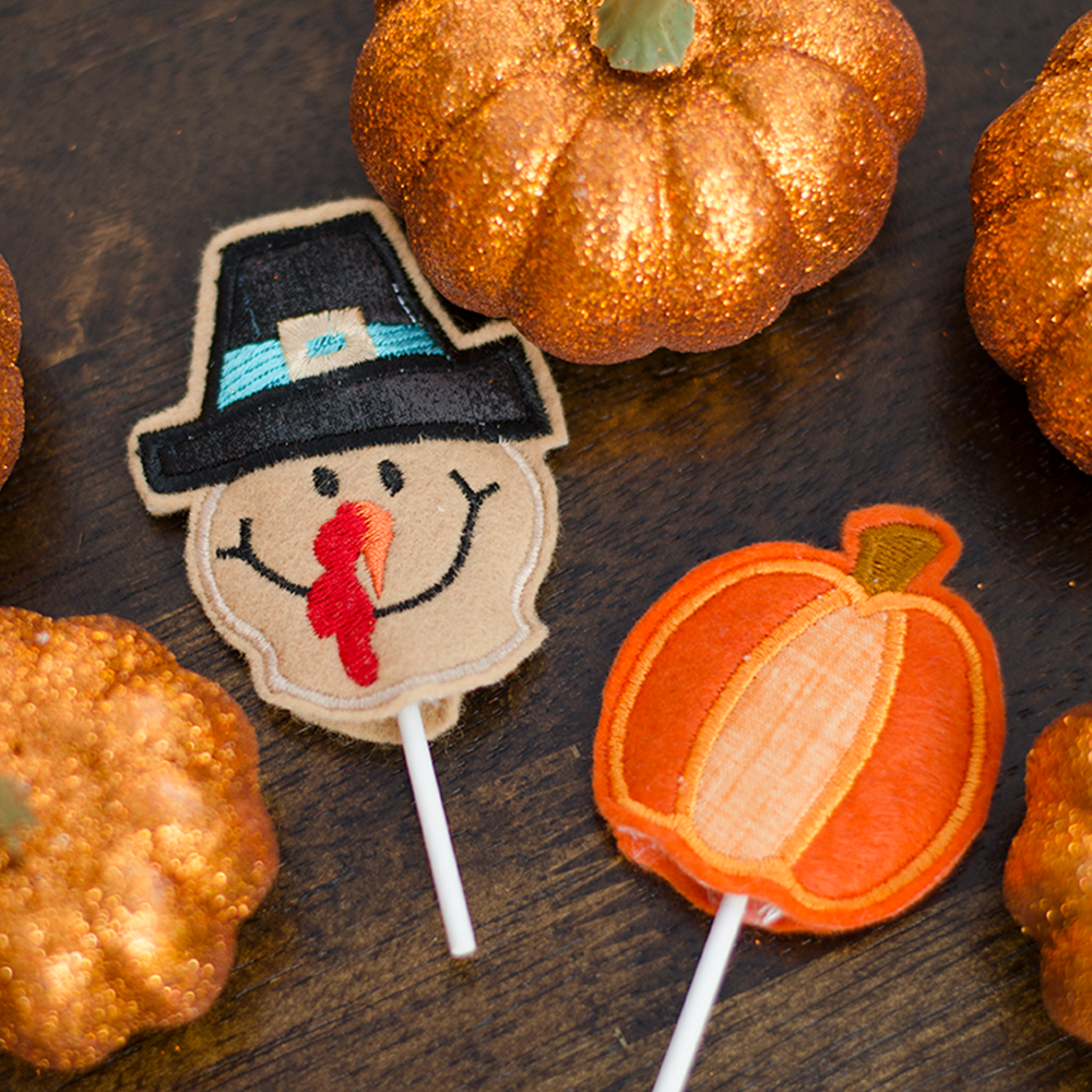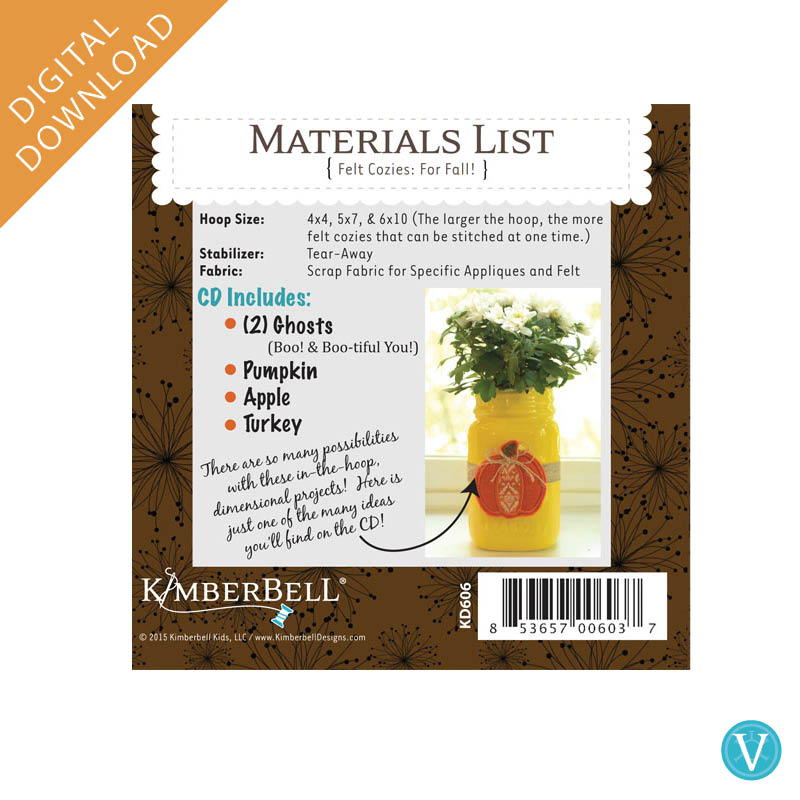 Create quick and simple gifts with Kimberbell Fall Felt Cozies! Made entirely in-the-hoop with Embroidery Felt, Medium Tear-Away Stabilizer, and applique fabric, these darling designs are a go-to for every machine embroiderer. Make one cozy in a 4×4″ hoop (or several at once in a larger hoop), then slip over suckers and straws, pencils and more! From class gifts to party favors, Fall Felt Cozies are an easy way to brighten a day!
