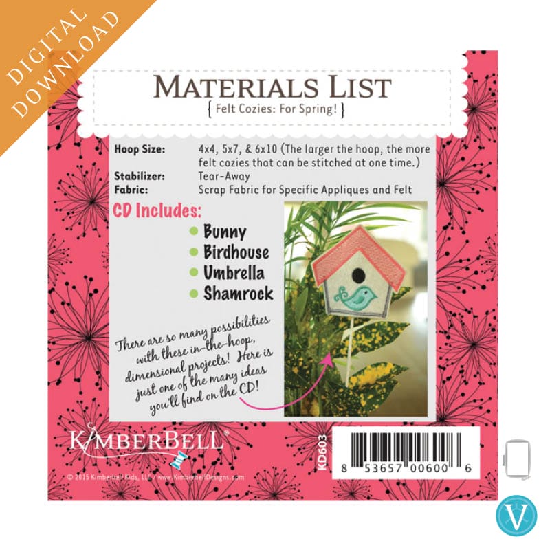 Create quick and simple gifts with Kimberbell Felt Cozies: For Spring! Made entirely in-the-hoop with Embroidery Felt, Medium Tear-Away, and applique fabric, these darling designs are a go-to for every machine embroiderer. Make one cozy in a 4×4 hoop (or several at once in a larger hoop), then slip over suckers and straws, pencils and more! From class gifts to party favors, Felt Cozies: For Spring are a fun way to brighten a day.