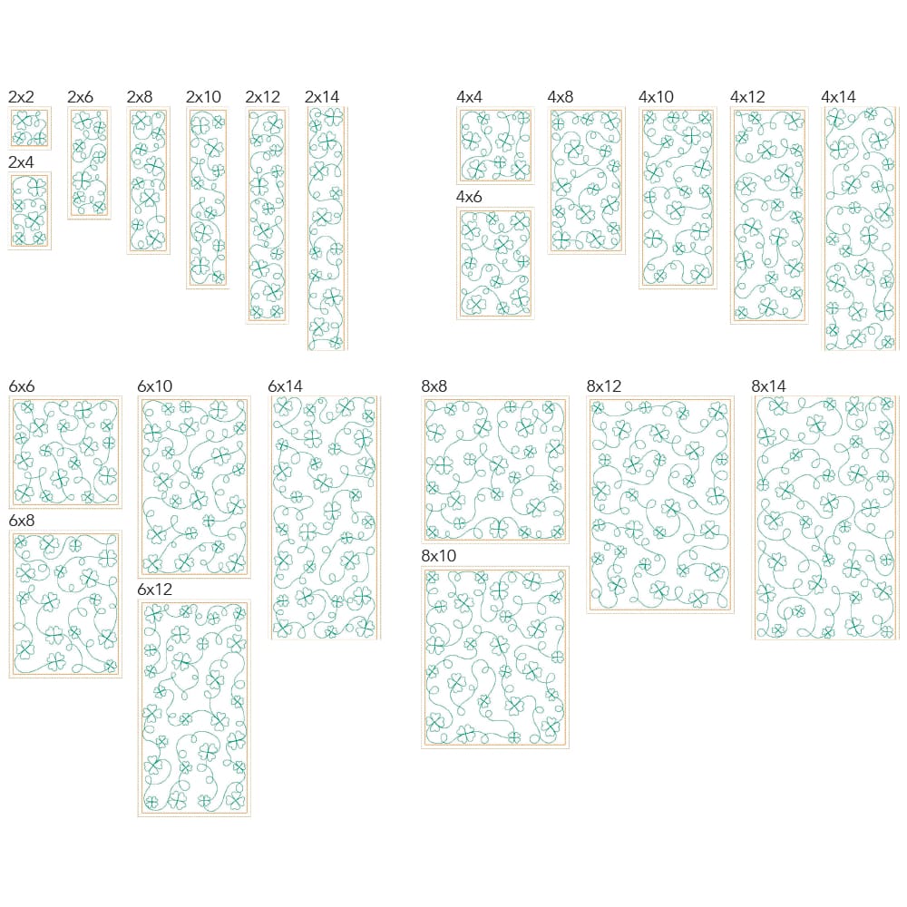 *All 22 files are designed to work with embroidery hoop sizes from 4x4 to 9x14. Check the Embroidery Field Size Chart to double check your machine's capabilities for each file size.