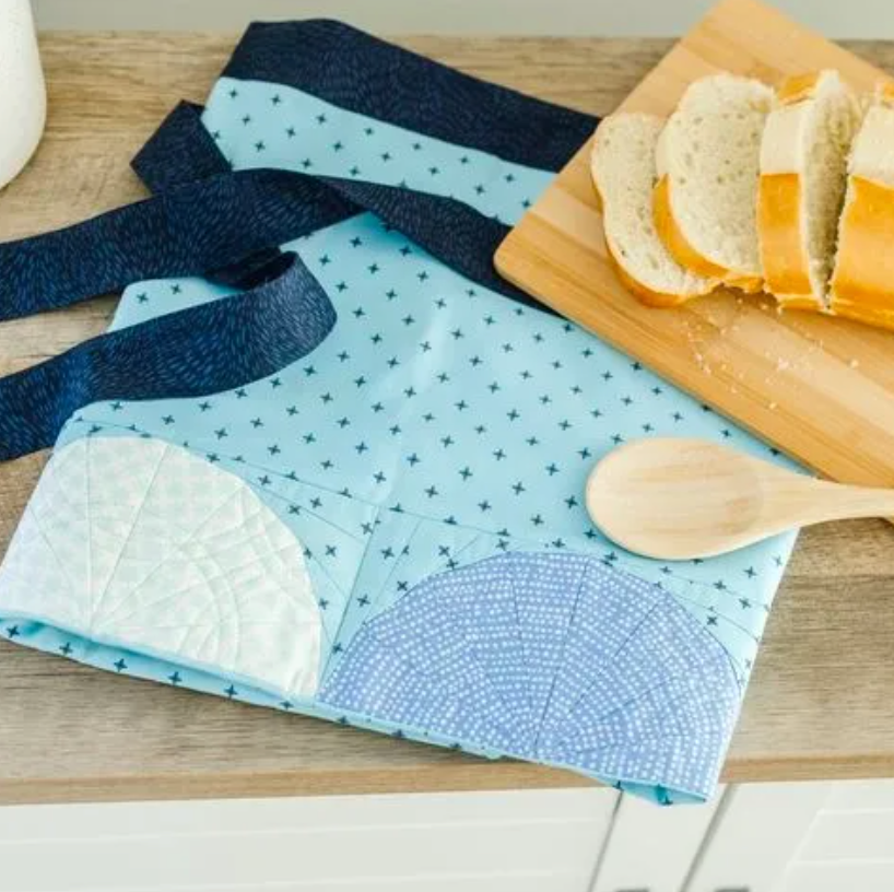 Blue skies are out to play with our March Perfectly Pieced Box! Featuring Tula Pink’s True Colors Delphinium Wildflower by FreeSpirit Fabrics, this month’s curated fabric bundle feels like spring. Enjoy a playful addition to your quilting library with the Drunkard’s Path quilt block. Also included in this month’s box is a special Half Apron project and a Schmetz Super NonStick Needle!