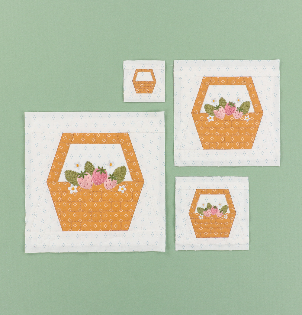 - Digital embroidery files for four block sizes (2”, 4”, 6”, 8”)