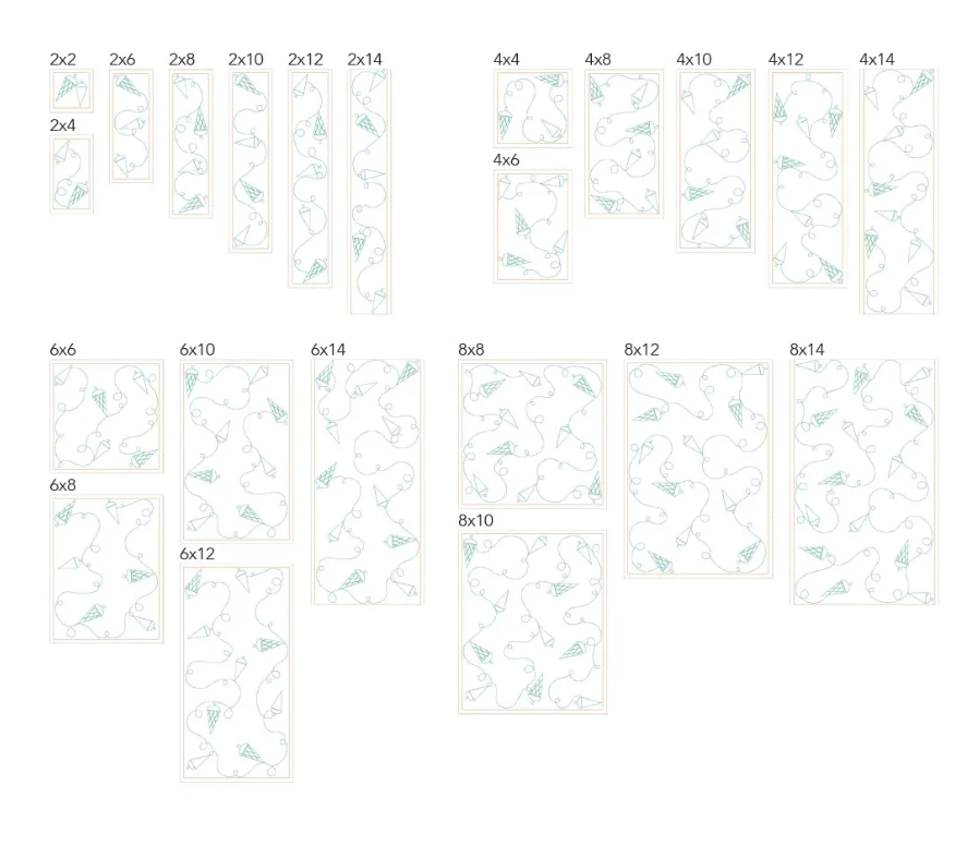 This design is compatible with the following hoop sizes: 5x7, 6x10, 8x12