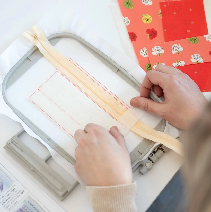 Fully lined and quilted, the FREE Molly Zipper Pouch is made completely in a 5x7 machine embroidery hoop! This quick & easy design makes the perfect pouch for pencils, makeup, sewing notions, and more.
