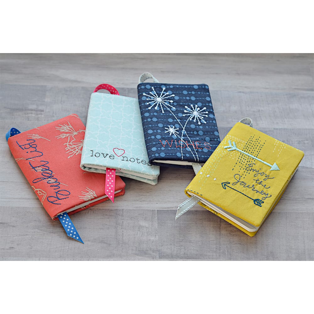 Turn ordinary composition books into beautiful journals with Kimberbell Noteables, Vol. 1! Designs include Enjoy the Journey, Love Notes, Wishes, and Bucket List in small sizes, Follow Your Heart in a medium size, and Adventure Awaits in a large size! Applique arrows and blocks are pieced right in-the-hoop. With designs for 5×7, 6×10, 8×12, and 9×14 hoops, Noteables are fully-lined, reusable, and absolutely adorable!
