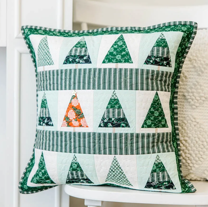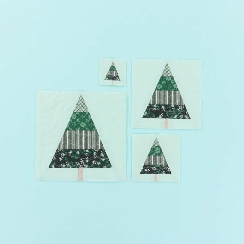 Celebrate the season with November’s Perfectly Pieced box! Our festive Tree Block projects will add a sparkle to the season. Follow our full-color, step-by-step instructions to create table runners and pillows, and don’t miss this month’s special Tree Farm Wall Hanging project with a gold metal star button!
