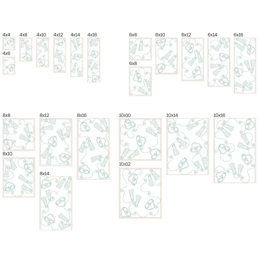 *All 22 files are designed to work with embroidery hoop sizes from 4×4 to 10×16. Check the Embroidery Field Size Chart to double check your machine’s capabilities for each file size.
