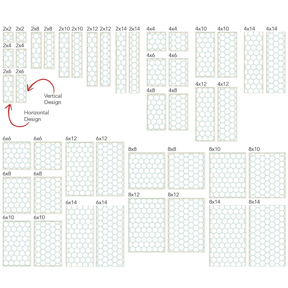 *All 44 files are designed to work with embroidery hoop sizes from 4x4 to 9x14. Check the Embroidery Field Size Chart to double check your machine's capabilities for each file size.