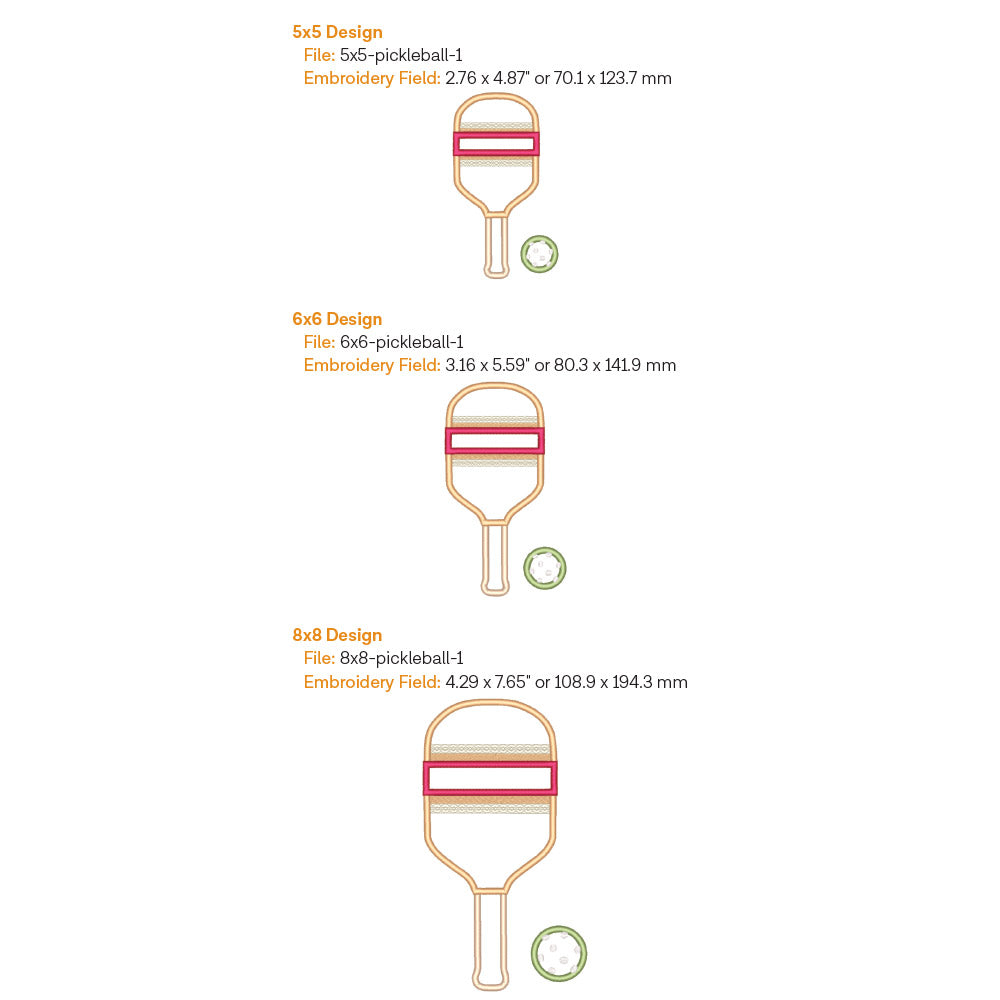 Pickleball Applique 1 is perfect for last-minute gifts and decor! Available in 5x5, 6x6, and 8x8 sizes, this darling design stitches out quickly on blanks, apparel, quilts, and so much more. Follow our simple instructions to add the applique to a variety of projects and be sure to check out the coordinating Sport 8 background quilting design!