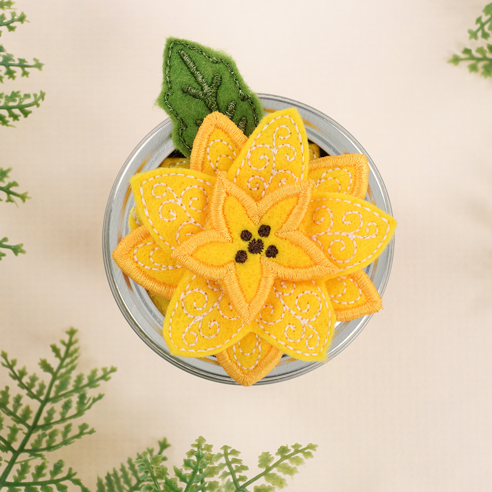 Create holiday wonder with Kimberbell’s Poinsettia Jar Topper! This fun and festive design comes in two sizes for regular and wide-mouth jars. Stitch in a 5×7 hoop in traditional crimsons and greens or choose whites, pinks, or other cheerful colorways! With decorative stitching and delightful dimension, our Poinsettia Jar Topper is perfect for neighbor gifts, ornaments, and so much more.