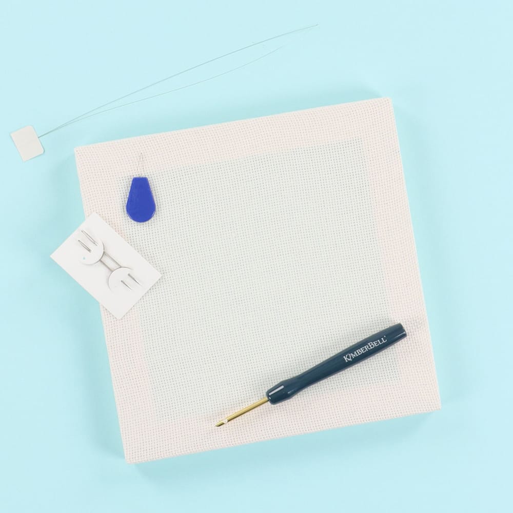 Make more of your favorite Kimberbell Punch Needle designs or free hand something with this 8” Pre-Stretched Monk’s Cloth Frame & Tool Set (No design included in this purchase).