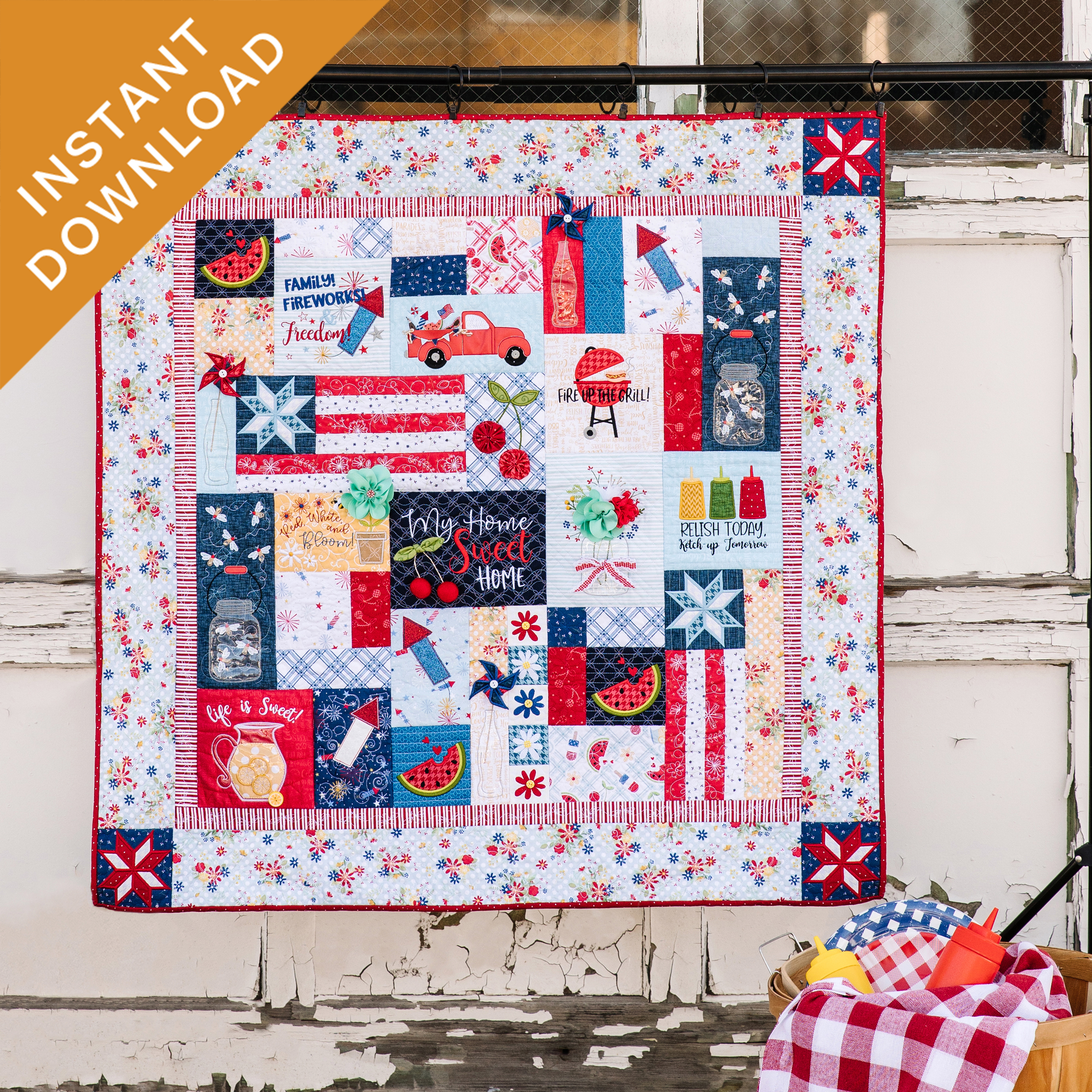 Red, White, & Bloom honors home sweet home with stars, stripes, and so much more! A vintage truck leads the parade, while sparkly applique rockets burst into the night sky. Catch fireflies in clear vinyl jars and add sliced lemons to the lemonade! With melons and cherries and THREE bonus projects, our patriotic quilt is really something to cheer about.