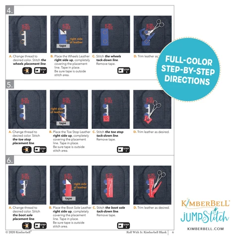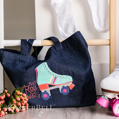 Lace up your skates and “just roll with it!” Kimberbell’s Roll With It design features a vintage roller skate with decorative stripes and raw-edge applique. Stitch the boot, plate, wheels, and toe stop from smooth Embroidery Leather, or add extra dazzle with Applique Glitter! Any way you spin it, our Roll With It Jumpstitch design keeps creativity on the move.