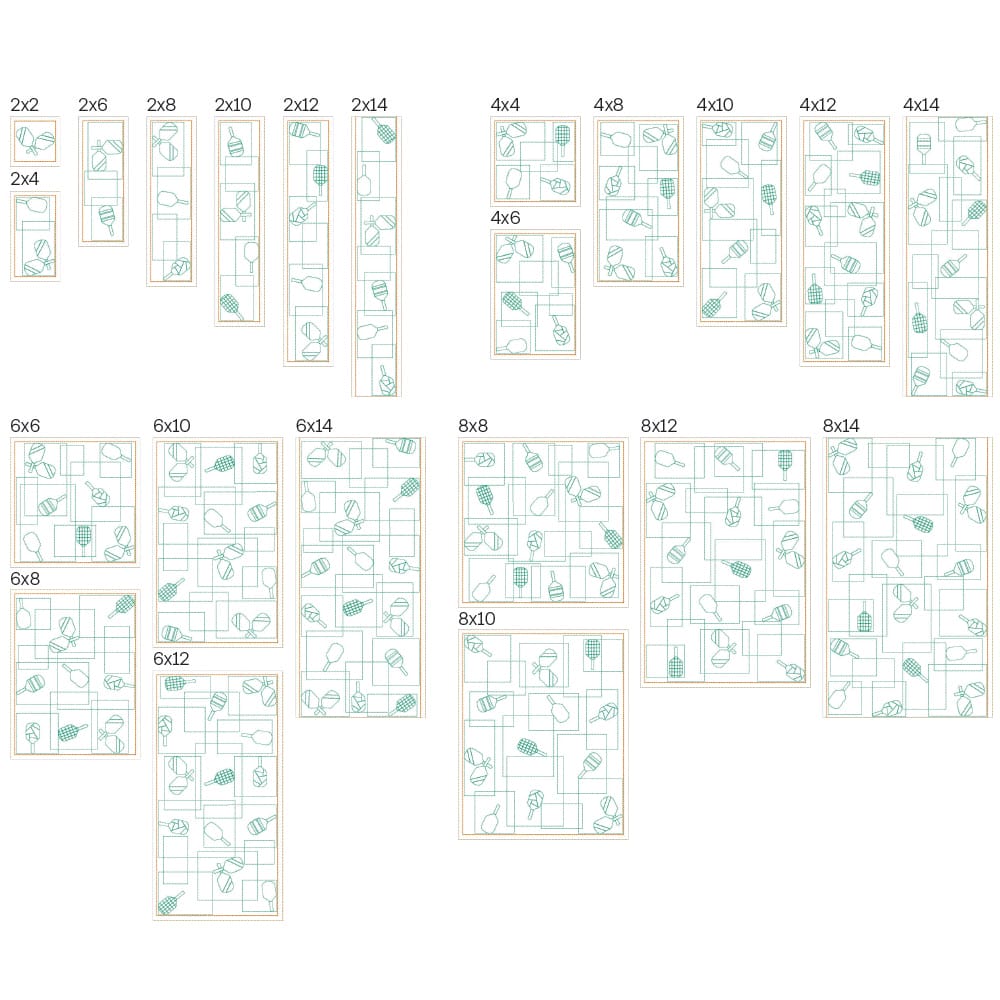 Again, your purchase of Sport 8 includes 44 file sizes: 22 files for the Clear Blue Tiles ® quilting method and 22 files for the Block-by-Block quilting method. Files will fit within any size of machine embroidery hoop, from 4×4 up to 9×14!