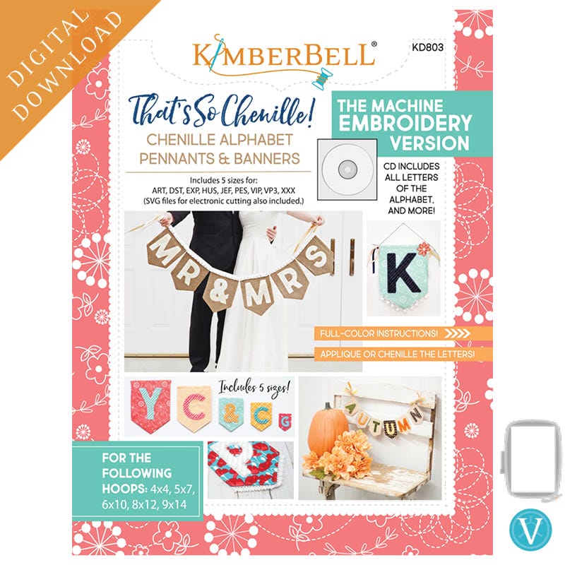 Pennants come in FIVE sizes from 4″ to 11.5″ long. Hang a single pennant from a dowel or string several pennants together to make a decorative banner spelling your child’s name, school, team, or celebration sentiment. Letters can be a simple applique or create your own chenille-all in the hoop! You’ll love all the unique ways you can embellish your banner with trims, ribbon, and tassels too! Download includes all letters of the alphabet and more.