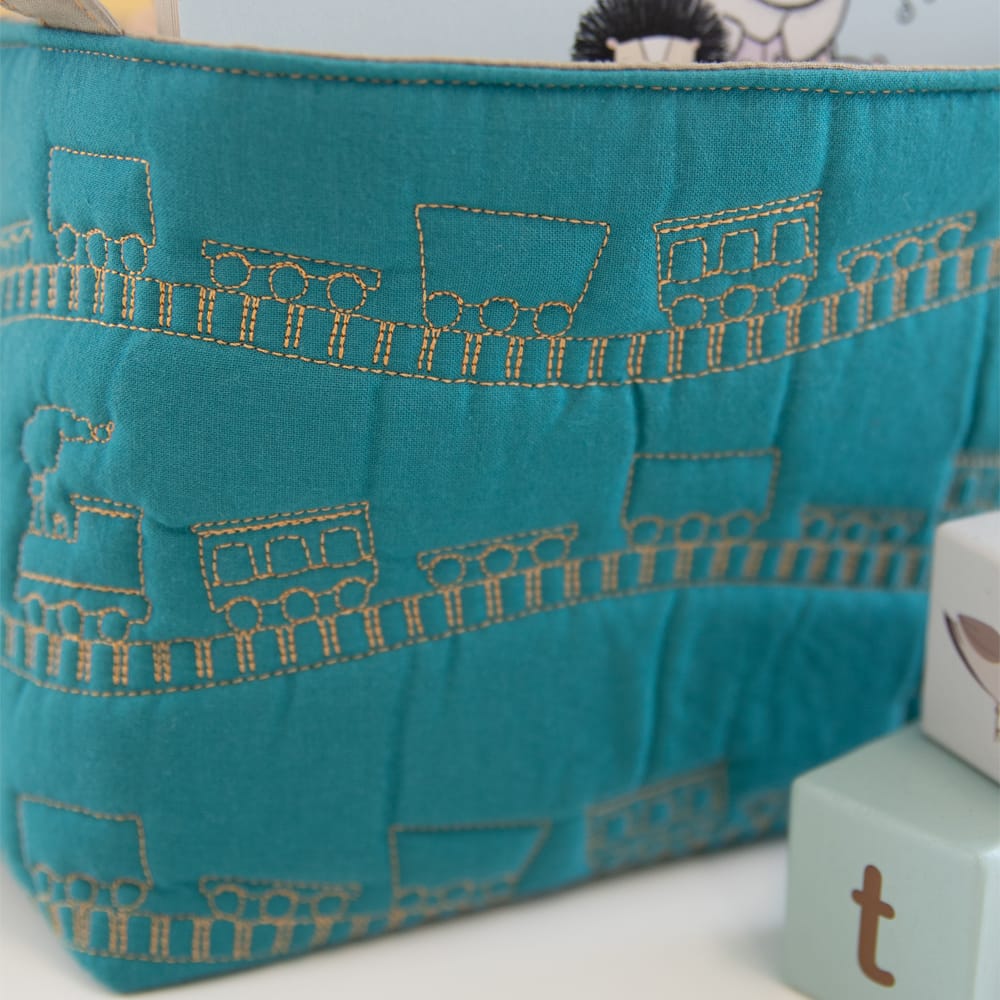 Train 1 Background Quilting is available to use on your embroidery machine to quilt your next project with Kimberbell’s innovative Block-by-Block quilting method. The Block-by-Block quilting method eliminates batting/bulk in the seams when sewing blocks together. Because of travel lines, this design will NOT work with Clear Blue Tiles®.